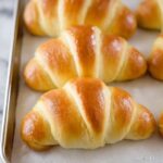 - Shape the Rolls: Punch down the risen dough, divide it into two halves. Roll each half into a large circle and cut each into 12 equal triangular pieces. Roll each triangle starting from the wide end towards the pointed end, forming a crescent shape. Place the rolls on greased baking sheets.