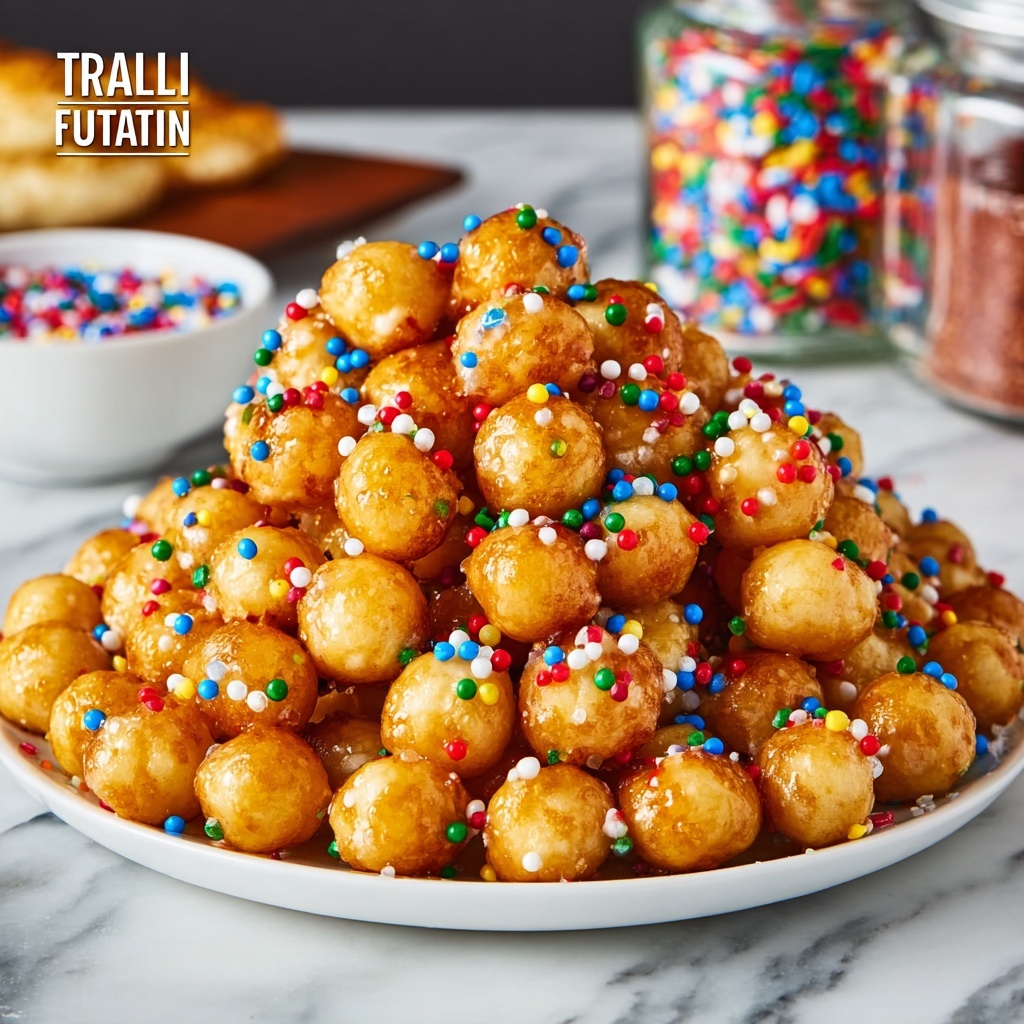 - Add Decorations: Sprinkle the struffoli generously with rainbow nonpareils for a festive look.