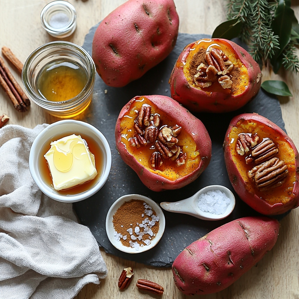 - 4 medium sweet potatoes: Choose potatoes with smooth skin and uniform size so they bake evenly to fluffy perfection.