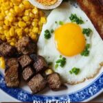 Cook the eggs sunny-side up or over-easy according to your preference, aiming for tender whites and runny yolks. These golden eggs add that luscious, velvety finish that envelopes every component on the platter.