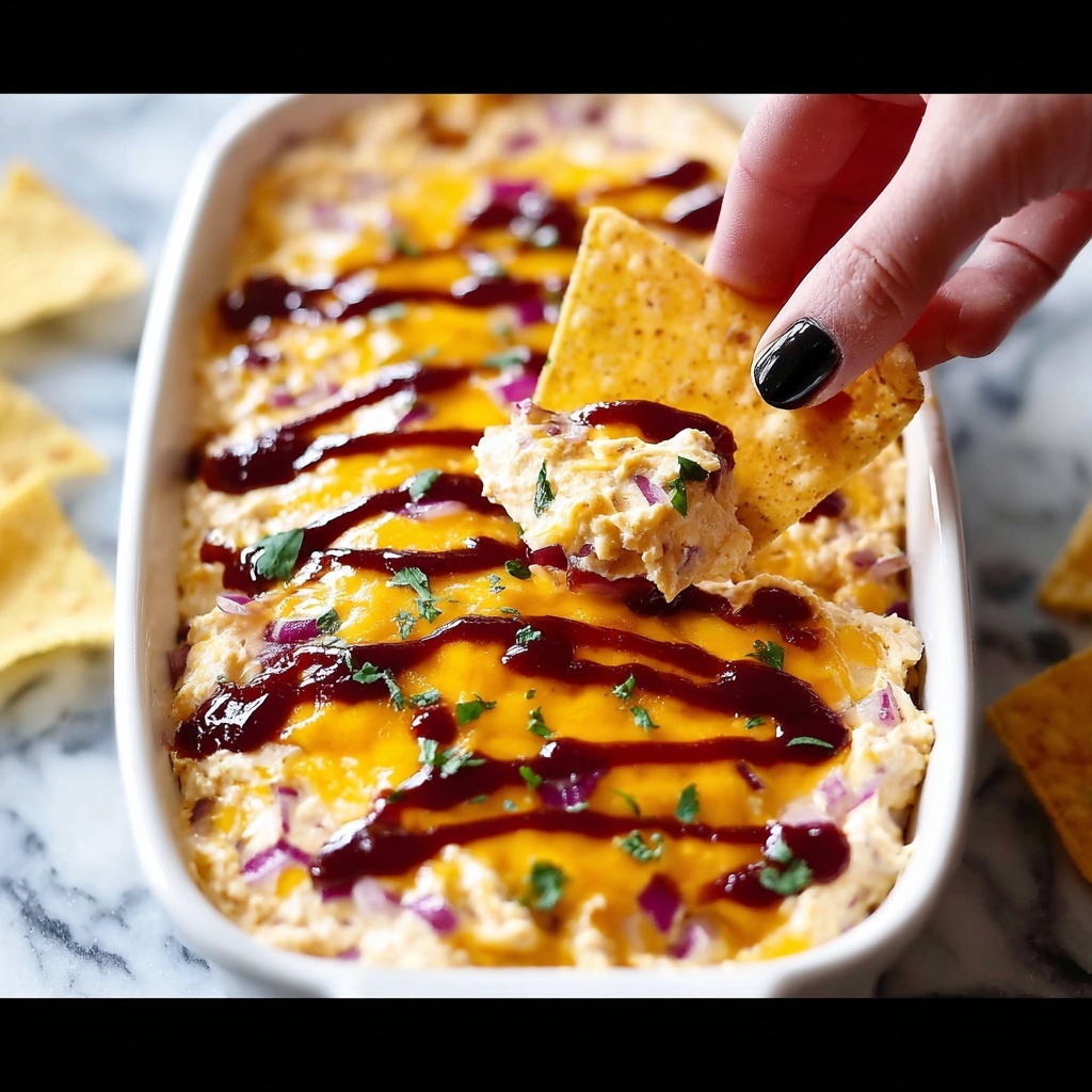A creamy, cheesy BBQ Chicken Dip perfect for parties and game day, combining shredded chicken with barbecue sauce, cream cheese, and a blend of cheeses baked until hot and bubbly.
