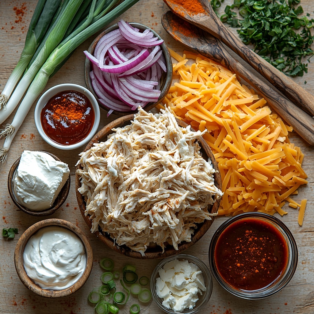 These ingredients are simple yet essential to creating a dip that’s rich in flavor and texture. Each one plays a key role: the cream cheese and sour cream bring silky creaminess, the BBQ sauce adds that signature smoky sweetness, and the cheeses provide melty, golden goodness. Plus, the finely chopped red onion and spices give just the right touch of depth and zest.
