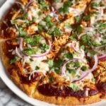This BBQ Chicken Flatbread Pizza is a quick and flavorful meal perfect for a casual dinner or a party snack. Featuring tender shredded chicken tossed in tangy barbecue sauce atop a crispy flatbread, it’s topped with melted mozzarella, sharp red onions, and fresh cilantro for a delightful balance of flavors and textures.