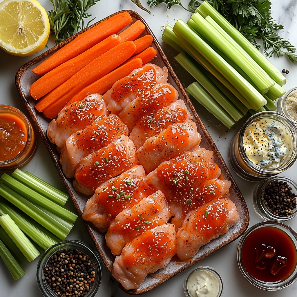 - Accompaniments (ranch or blue cheese dressing, celery, carrot sticks, lemon wedges): Classic sides that cool and complement the spicy heat beautifully.