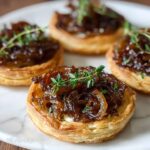 For parties, cut the tarts into bite-sized squares for easy finger food. Alternatively, create a rustic tart presentation by baking the puff pastry as one large sheet and slicing it into individual portions at the table. Garnish each piece with a small thyme sprig for a charming handmade touch.