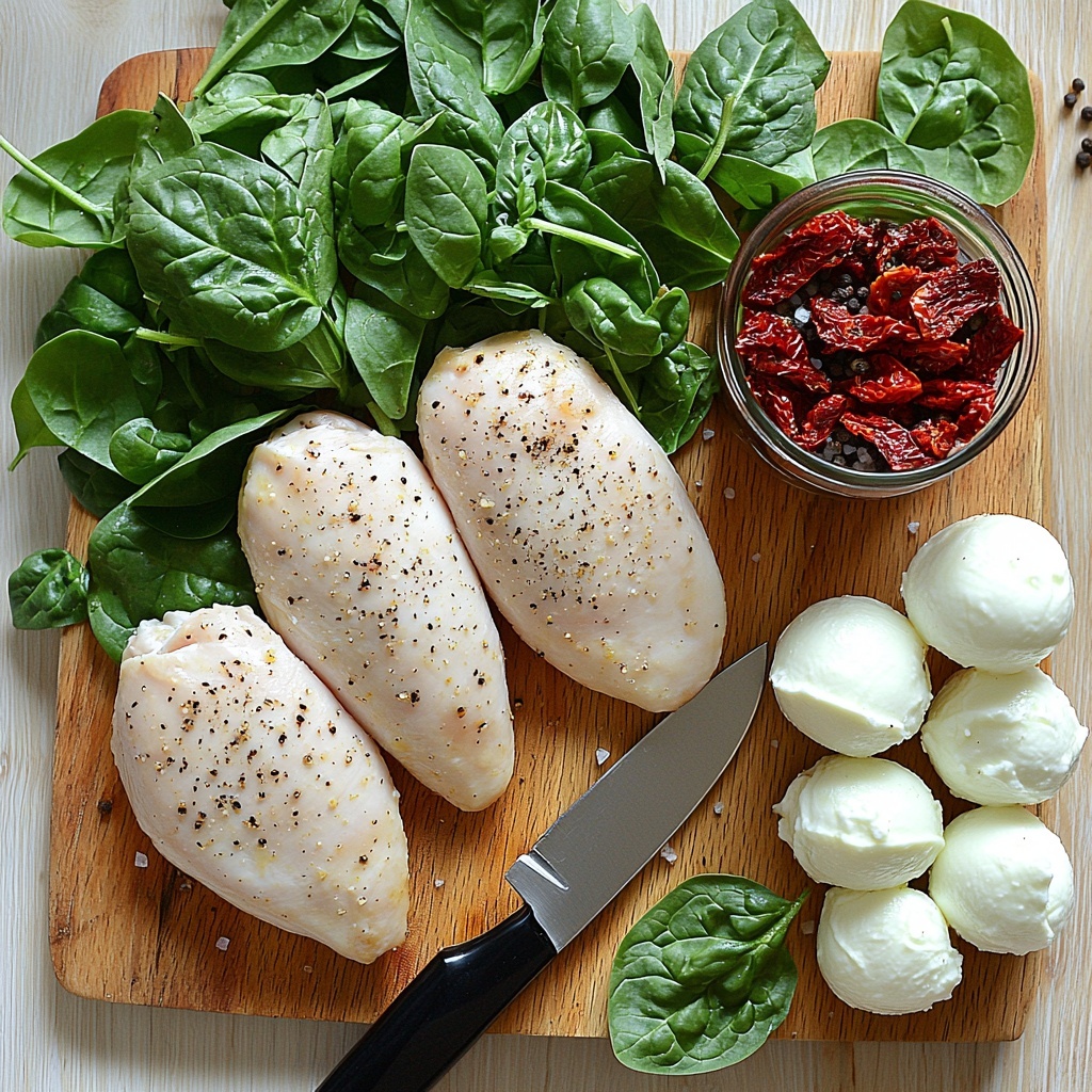 This Cheesy Caprese-Stuffed Chicken is an easy and delicious dinner treat featuring tender chicken breasts filled with a flavorful mixture of baby spinach, sun-dried tomatoes, and fresh mozzarella. Baked to perfection with Italian seasoning, this dish makes for a satisfying and elegant meal perfect for any night of the week.