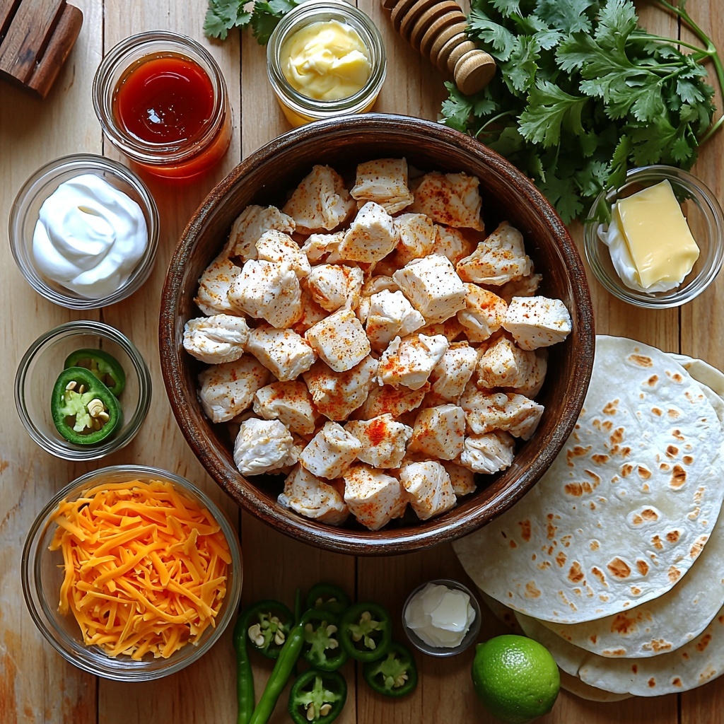 For this Cheesy Hot Honey Chicken Quesadillas Recipe, you don’t need a long shopping list, but each ingredient plays a vital role in creating the perfect harmony of flavors and textures. From the smoky spices seasoning the chicken to the creamy, spicy jalapeño sauce, these components come together effortlessly for a crowd-pleasing meal.