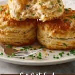 A comforting and hearty Chicken and Biscuits casserole featuring tender chunks of chicken and mixed vegetables in a creamy sauce, topped with fluffy homemade cheddar biscuits baked to golden perfection.