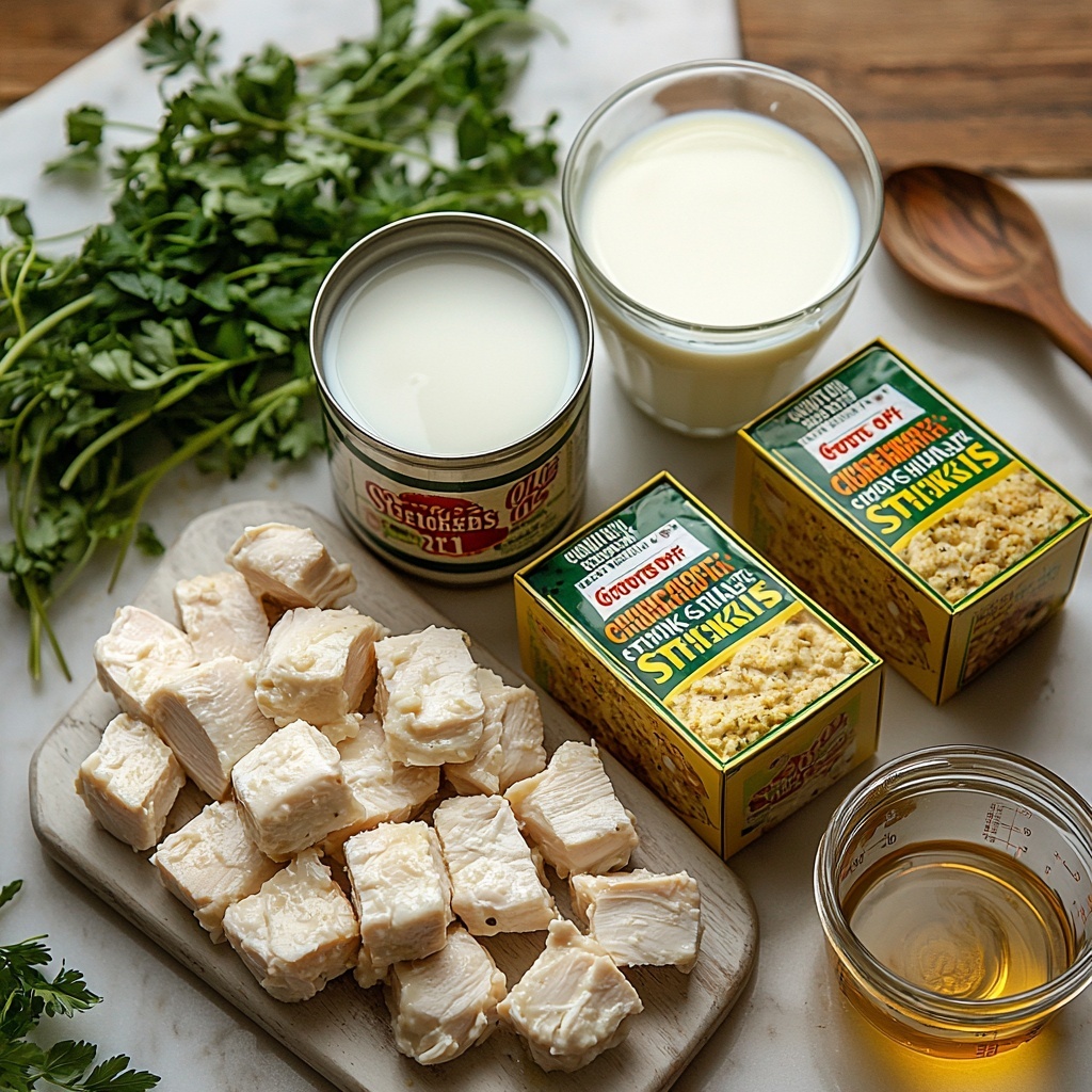 These ingredients are simple and pantry-friendly, yet each one plays a crucial role in building the hearty richness and delightful texture of this Chicken & Stuffing Bake Recipe.