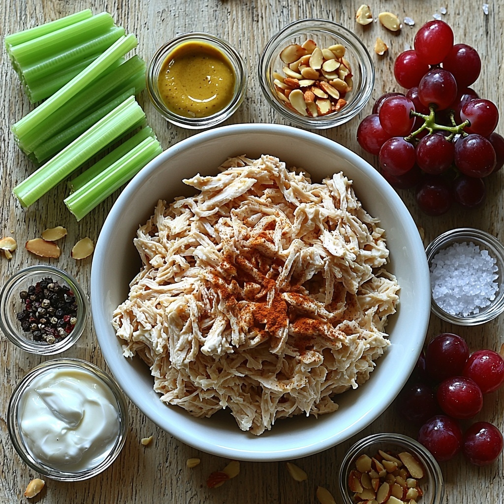 The beauty of this recipe lies in its simplicity. Each ingredient plays an essential role, whether it’s building the creamy base, adding crunch, or bringing in bursts of subtle sweetness that elevate this dish above ordinary chicken salad. You only need a handful of pantry and fridge staples to create magic!