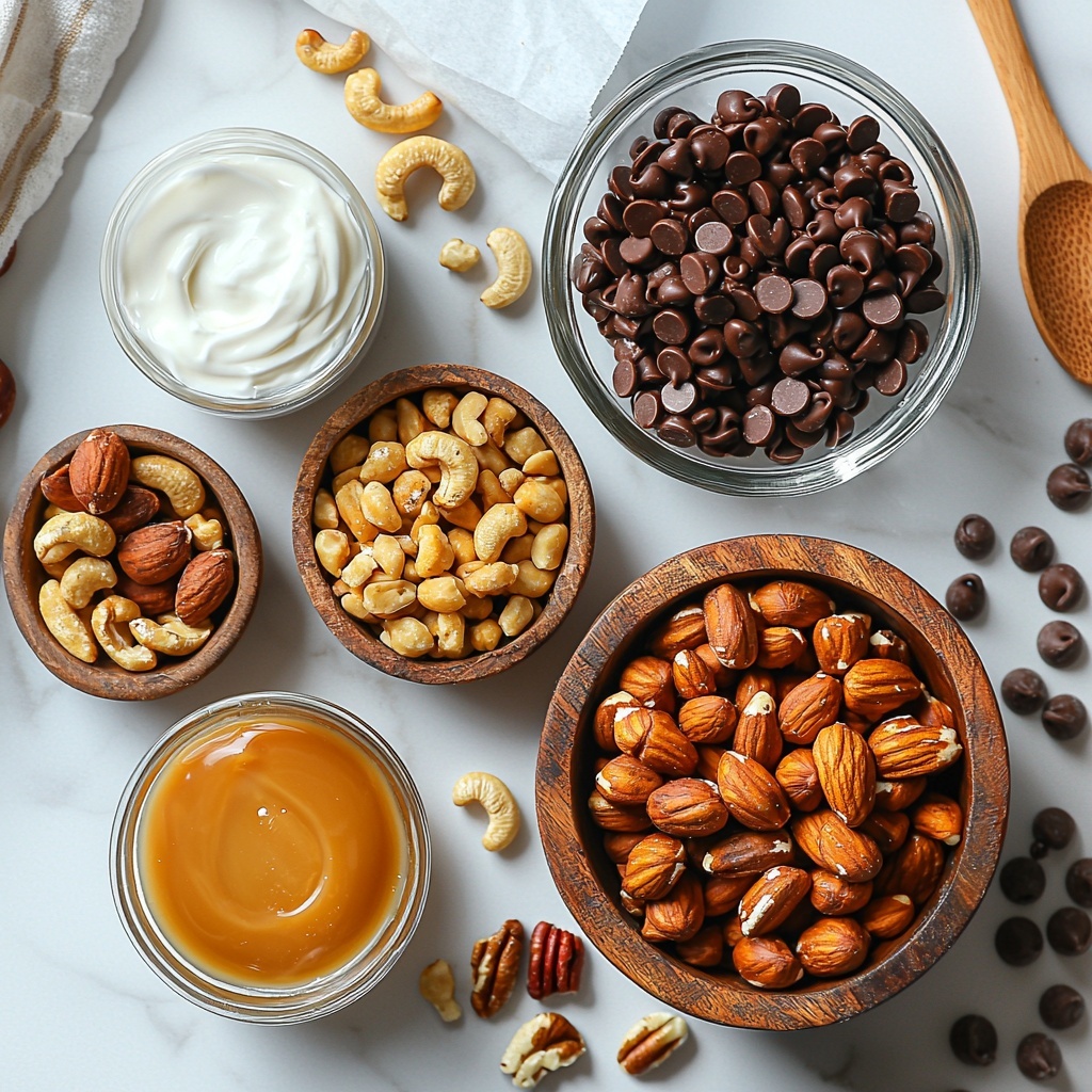 - Combine Nuts: Add the mixed nuts to the melted caramel mixture, stirring well to evenly coat all the nuts.