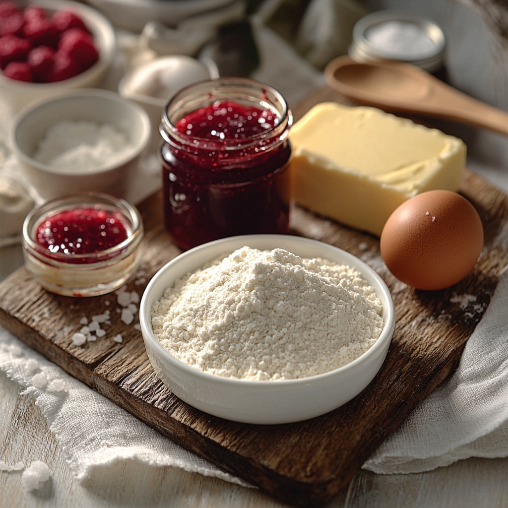The beauty of this Christmas Raspberry Jam Cookies Recipe lies in its simplicity, using just a handful of essential ingredients that come together to create a harmonious blend of flavors and textures. Each one plays a starring role, whether it’s the richness of the butter or the bright pop of raspberry jam, making these cookies both easy and irresistible.