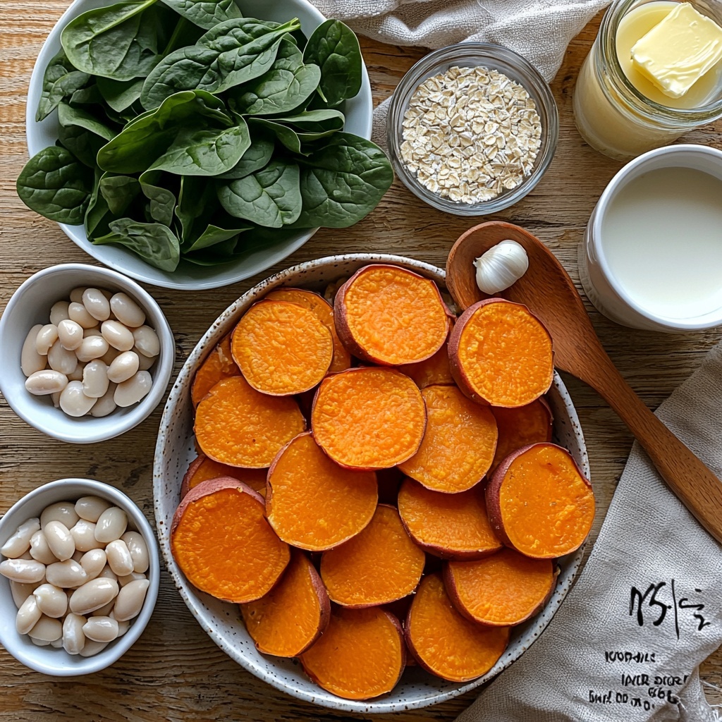 These ingredients are simple, wholesome, and each plays a crucial role in making this casserole both tasty and comforting. From the natural sweetness of perfectly roasted sweet potatoes to the nourishing green spinach and creamy beans, every item brings something special to the table.