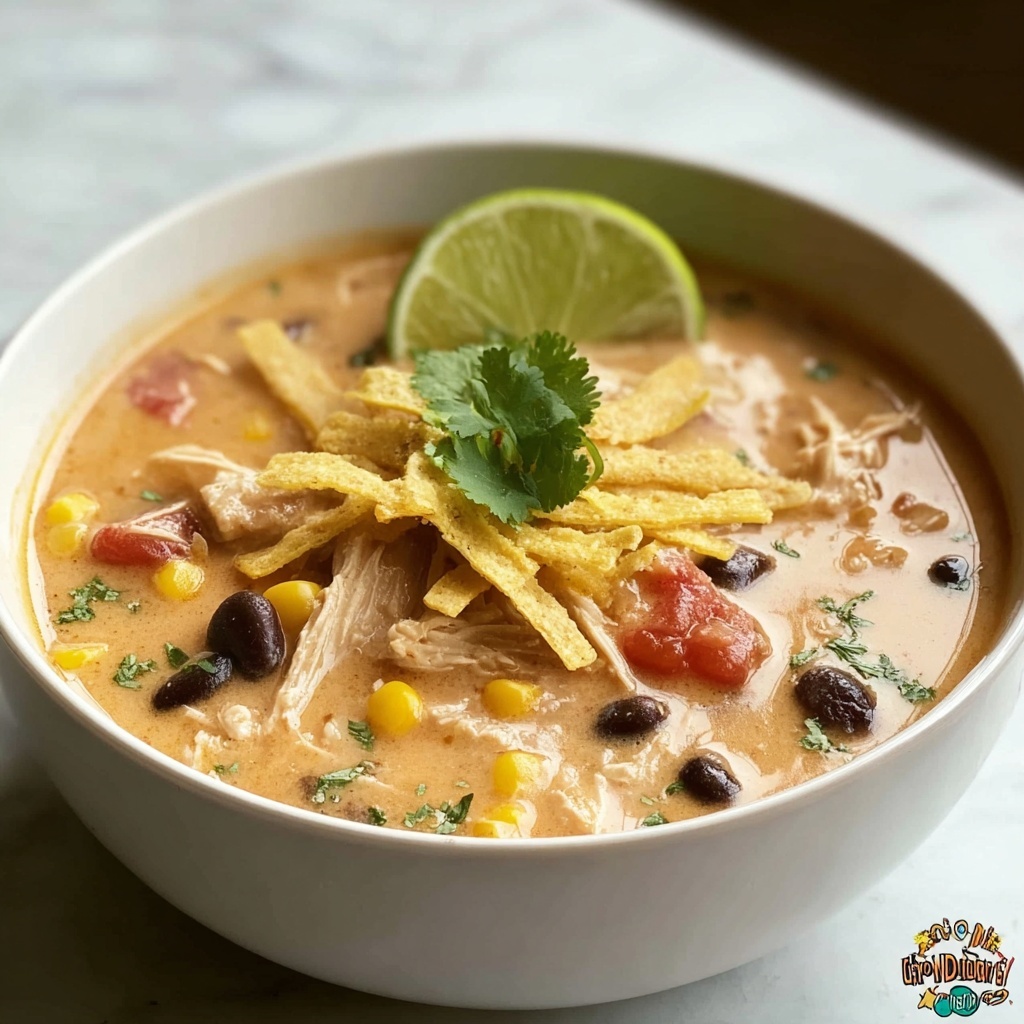 Ladle the comforting soup into bowls and finish with crispy tortilla strips, a sprinkle of fresh cilantro, and a bright squeeze of lime. These final touches add crunch, freshness, and a zesty lift to every bite, making the Creamy Chicken Tortilla Soup with Black Beans Recipe feel as special as it tastes.