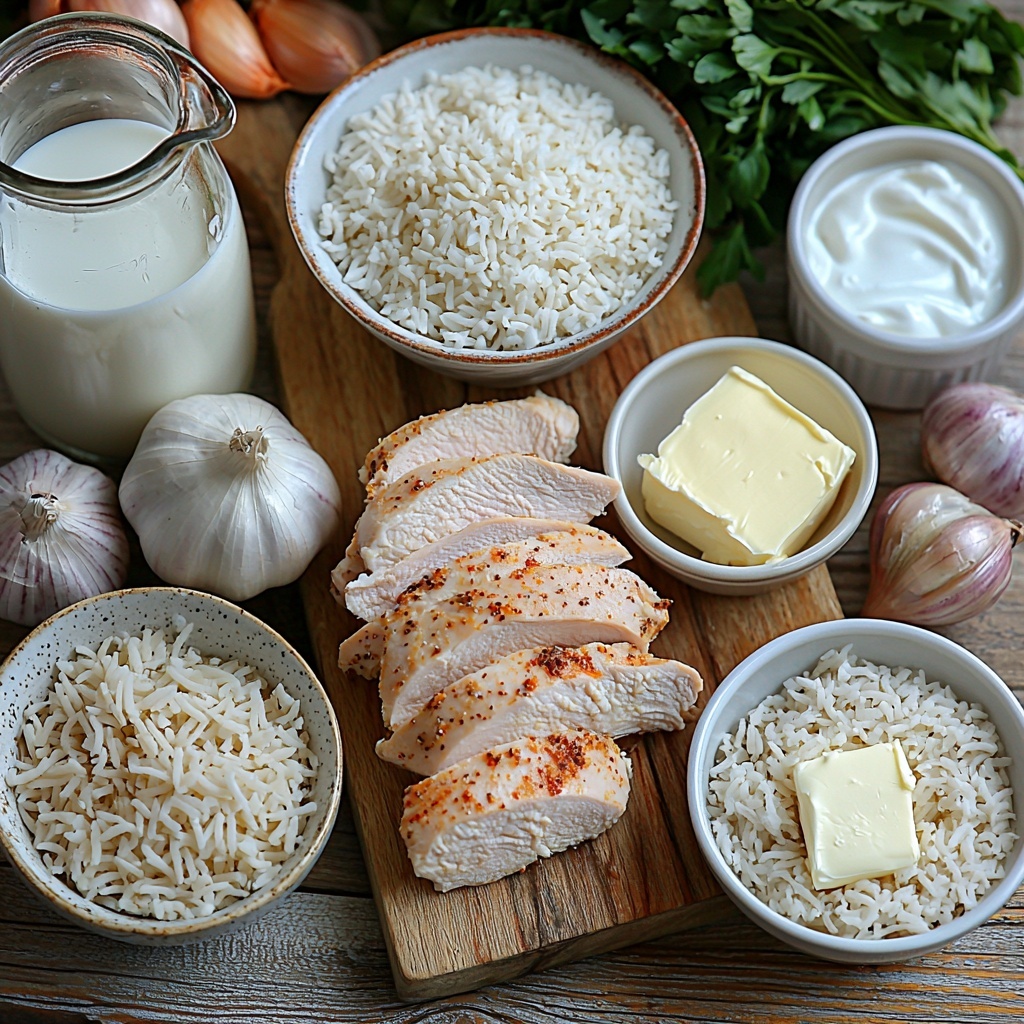 These ingredients are simple pantry staples, each contributing to the amazing taste, texture, and appearance of your Creamy Parmesan Chicken & Rice Recipe. From the tender protein to the cheesy, creamy elements, every component plays its part beautifully.