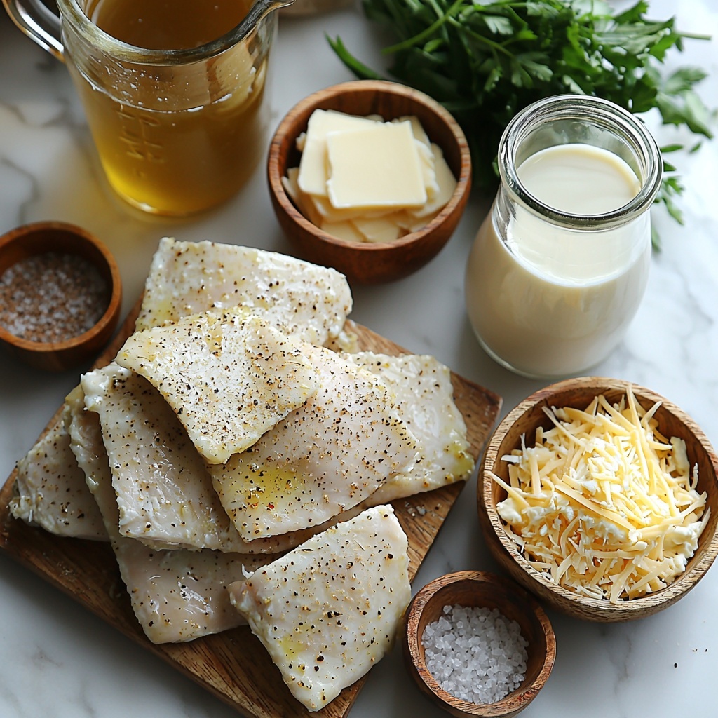 Gathering a handful of simple but flavorful ingredients is all it takes to bring the Creamy Ranch Chicken Recipe to life. Each component plays a crucial role, giving you perfectly seasoned chicken with a luscious sauce that’s creamy without feeling heavy.
