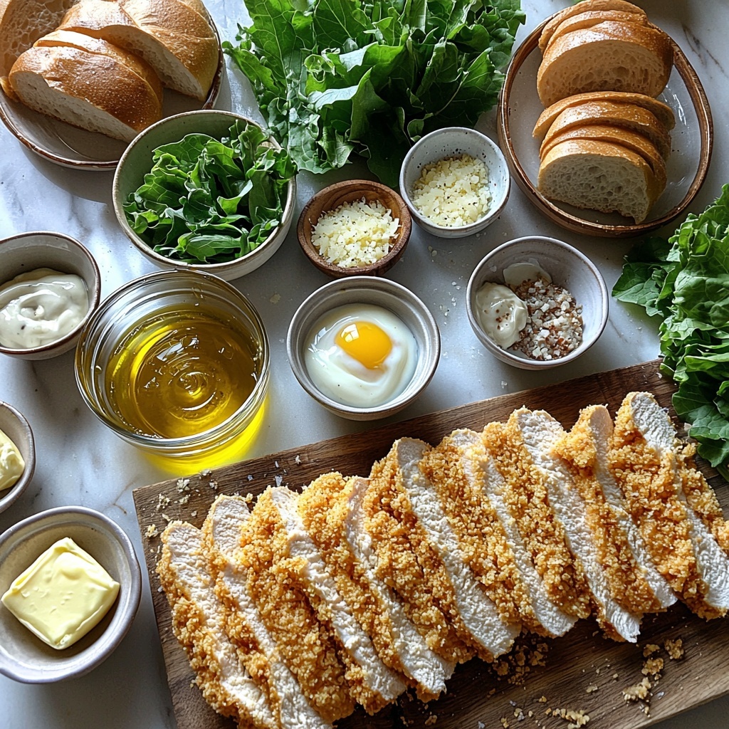 - Assemble Sandwiches: Layer the fried chicken cutlets onto the toasted bread, add a generous amount of romaine lettuce, and drizzle with the homemade Caesar dressing. Serve immediately while warm and crispy.
