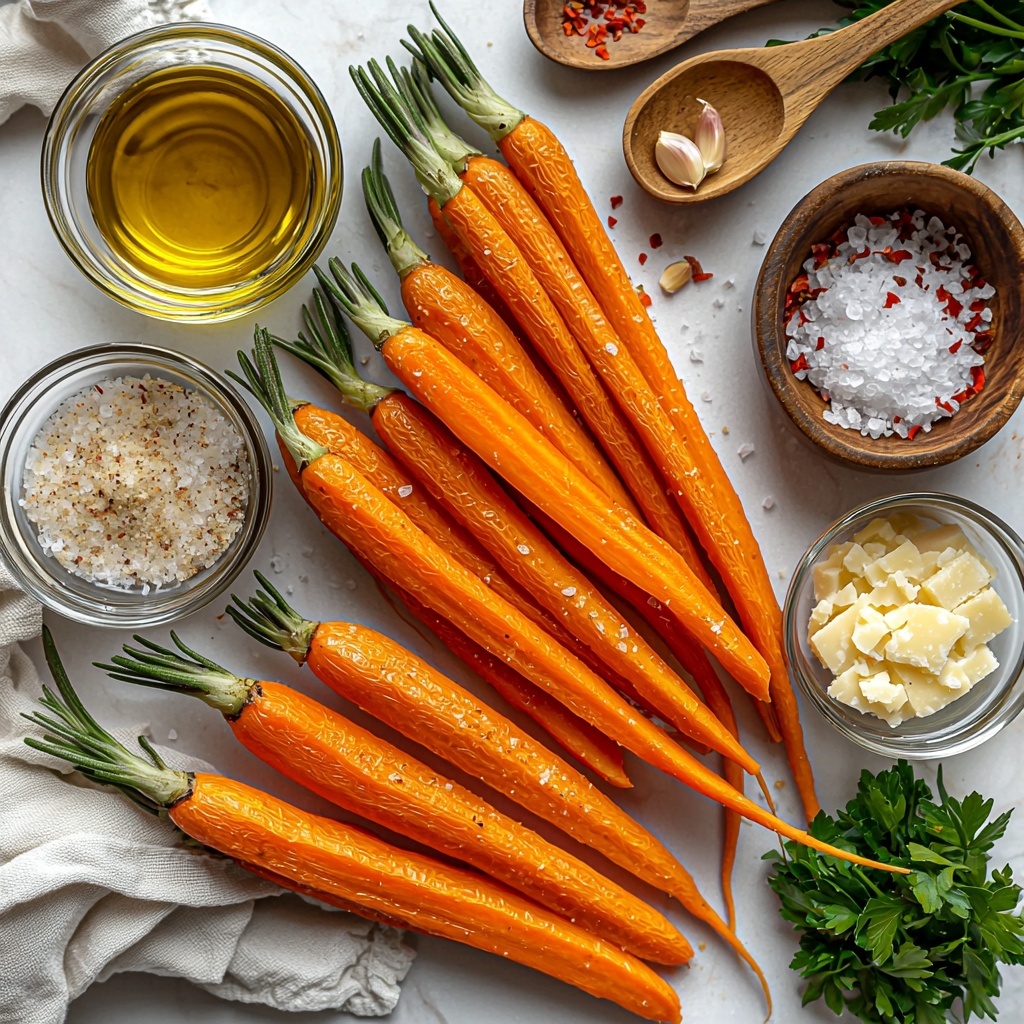 These ingredients are wonderfully straightforward yet essential—they bring together a balance of earthy sweetness from the carrots, a zesty hint from spices, and that crave-worthy savory crunch from Parmesan cheese.
