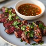 Crying Tiger Beef with Nam Jim Jaew Sauce is a vibrant Thai-inspired recipe featuring marinated grilled beef steak paired with a tangy, spicy dipping sauce made from toasted glutinous rice, tamarind, lime, and chili flakes. This dish offers a perfect balance of smoky, savory, and zesty flavors that create a delicious flavor adventure, ideal for weeknight dinners or special gatherings.