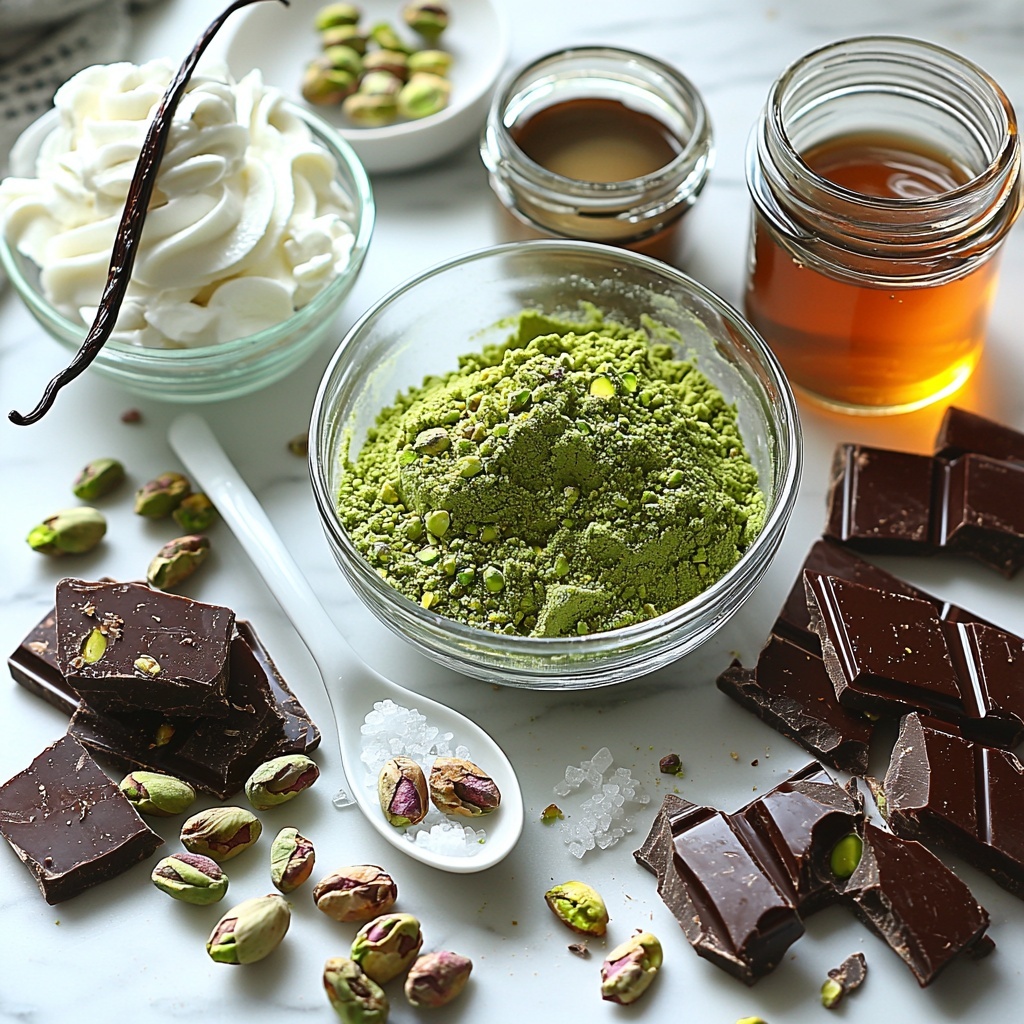 The magic of the Decadent Pistachio Mousse with Rich Chocolate Ganache Bliss Recipe lies in its thoughtfully chosen ingredients. Each one is essential not only for flavor but also for creating that delightfully airy texture and glossy finish that make this dessert so irresistible.