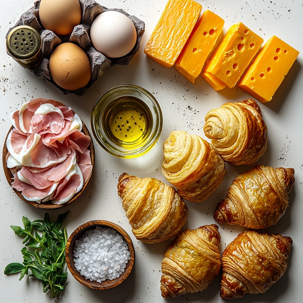 This recipe keeps things simple but packs incredible flavor by focusing on a handful of essential ingredients. Each one plays a special role—from the buttery richness of the croissants to the creamy texture of the eggs, to the savory layers of ham and cheese that tie it all together.