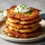 Traditional garnishes like a dollop of sour cream or a spoonful of sweet applesauce complement the crispy texture and mild seasoning of the pancakes beautifully. Fresh herbs such as chives or parsley also add a fresh pop of color and flavor, making every bite brighter and more memorable.