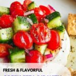 A refreshing and creamy Greek Feta Dip featuring whipped feta cheese combined with fresh vegetables like grape tomatoes, cucumber, and red onion. This delightful dip is flavored with herbs and spices, perfect for serving with pita chips or crostinis as a light appetizer or snack.