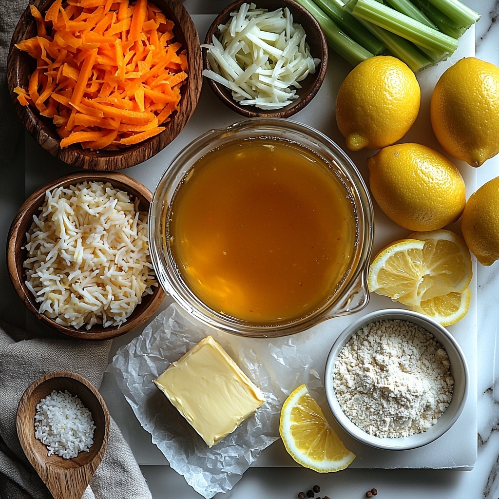 - Combine Ingredients: In a large pot, combine the chicken broth, fresh lemon juice, shredded carrots, chopped onion, chopped celery, chicken soup base, and ground white pepper. Bring the mixture to a boil over medium-high heat.