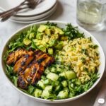This Grilled Chicken Orzo Salad is a vibrant and satisfying dish featuring tender grilled chicken, fluffy orzo pasta, creamy avocado, fresh cherry tomatoes, and tangy feta cheese. Tossed in a zesty homemade vinaigrette, this salad offers a perfect balance of flavors and textures. Ideal for a quick lunch, light dinner, or a refreshing dish for warm weather gatherings.