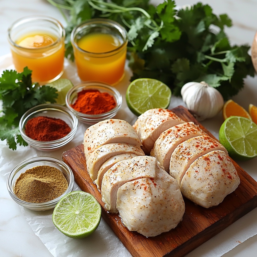 Start by whisking together the freshly squeezed lime and orange juices with olive oil and minced garlic. Then add the ground cumin, smoked paprika, dried oregano, salt, black pepper, and cayenne pepper. This marinade is the magic behind the chicken’s incredible flavor. The citrus juices not only brighten the dish but also tenderize the chicken, while the spices create layers of taste that will make your mouth water.
