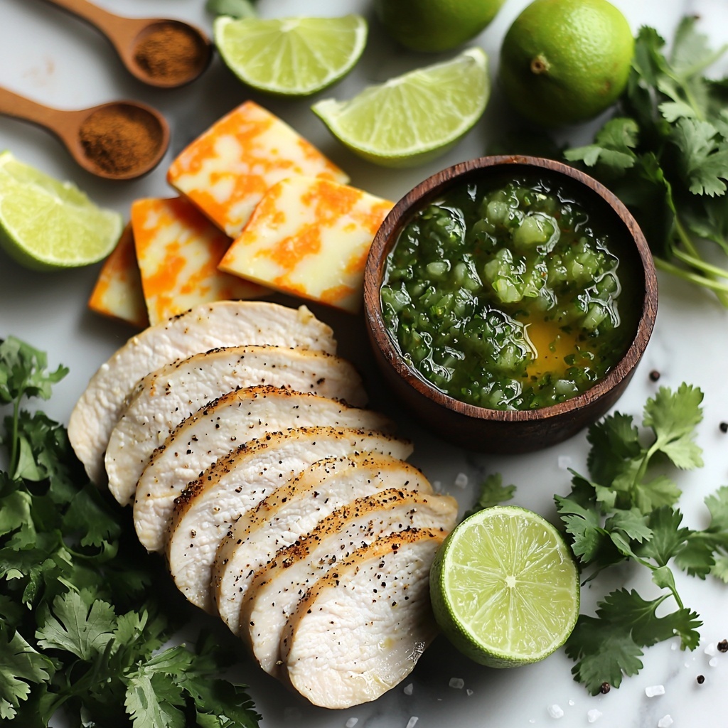 Start by combining the salsa verde, olive oil, lime juice, cumin, salt, and freshly ground black pepper in a large bowl. This marinade is the flavor powerhouse that will soak into every slice of chicken, delivering a tangy, spicy, and aromatic foundation you’ll absolutely love.