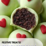 Delightfully festive Grinch Oreo Balls perfect for holiday celebrations. These no-bake treats combine crushed Oreo cookies and creamy cream cheese, coated in vibrant green candy melts and decorated with red heart sprinkles for a fun, eye-catching dessert that’s easy to make and sure to impress.