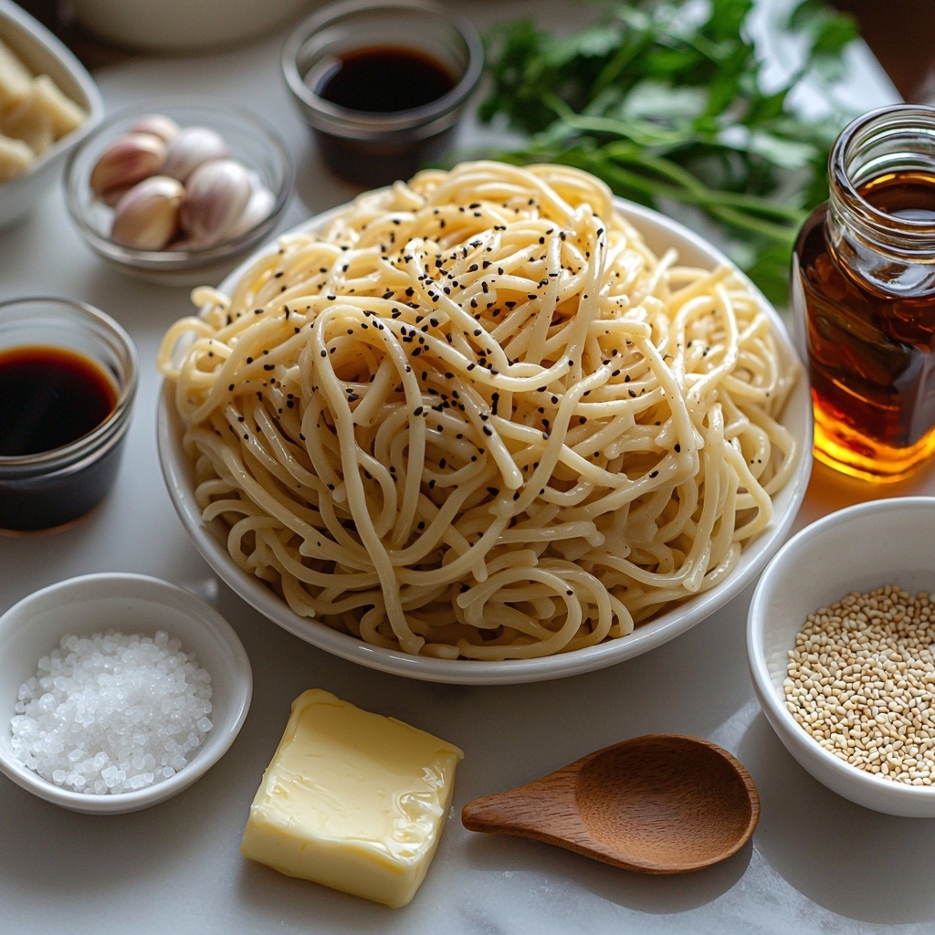 These ingredients are straightforward yet essential, each bringing its own magic to the dish. From buttery richness and fragrant garlic to the satisfying umami of soy and teriyaki, every component plays a vital role in making these noodles irresistible.