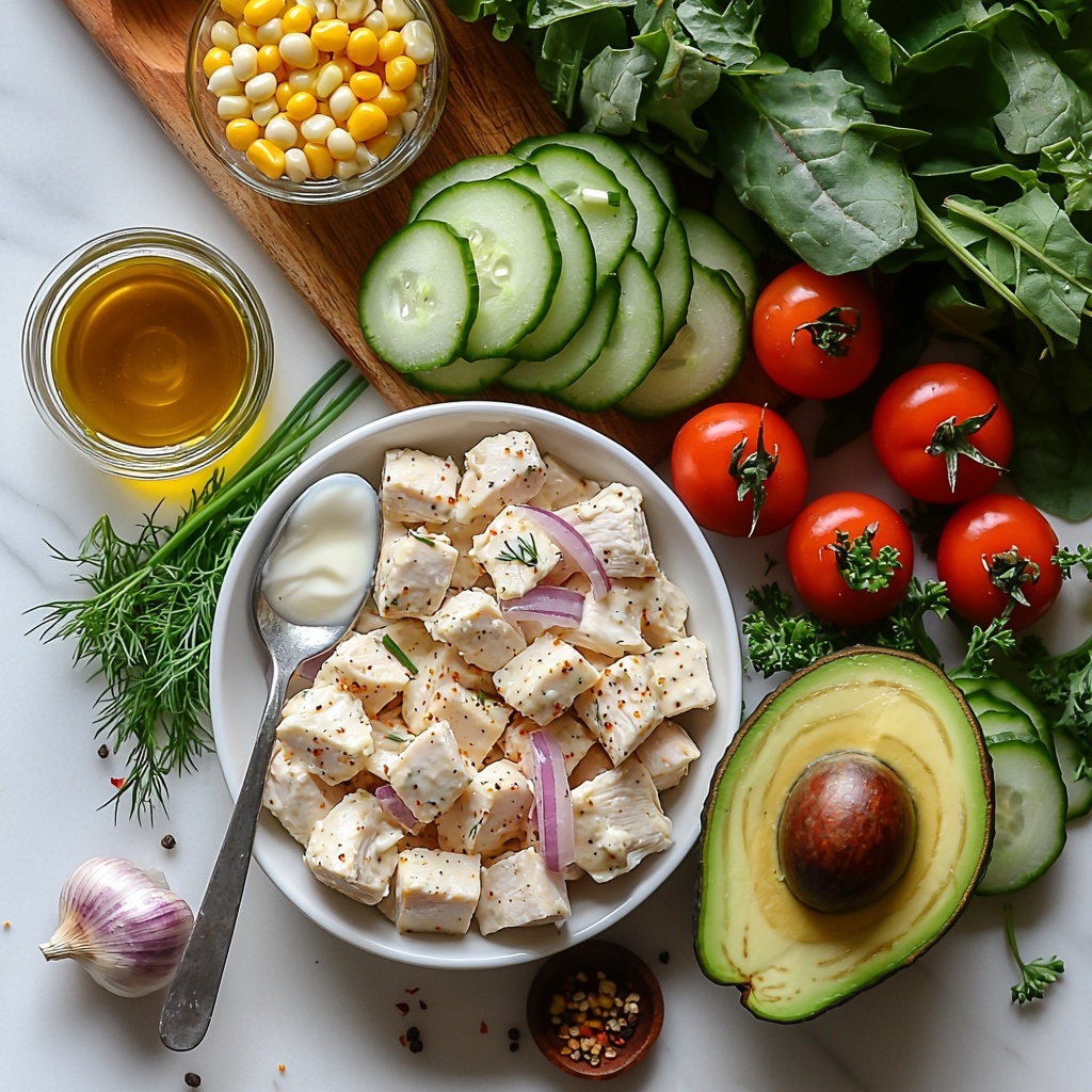 Gathering the right ingredients is key to nailing this High Protein Ranch Chicken Salad Recipe. Each one is simple yet essential, contributing distinctive flavors, textures, and nutrition to the salad. From creamy Greek yogurt that forms the base of the dressing to fresh herbs that brighten every forkful, these ingredients come together to create magic in your bowl.