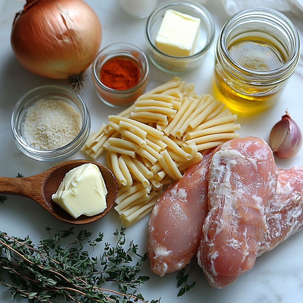 Sprinkle garlic powder, Italian seasoning, and paprika over the sautéed chicken and onions, stirring to coat everything evenly. Pour in the chicken stock, scraping the bottom of the pot to loosen any tasty browned bits, then add the pasta. This one-pot layering allows the pasta to absorb the broth’s richness as it cooks.
