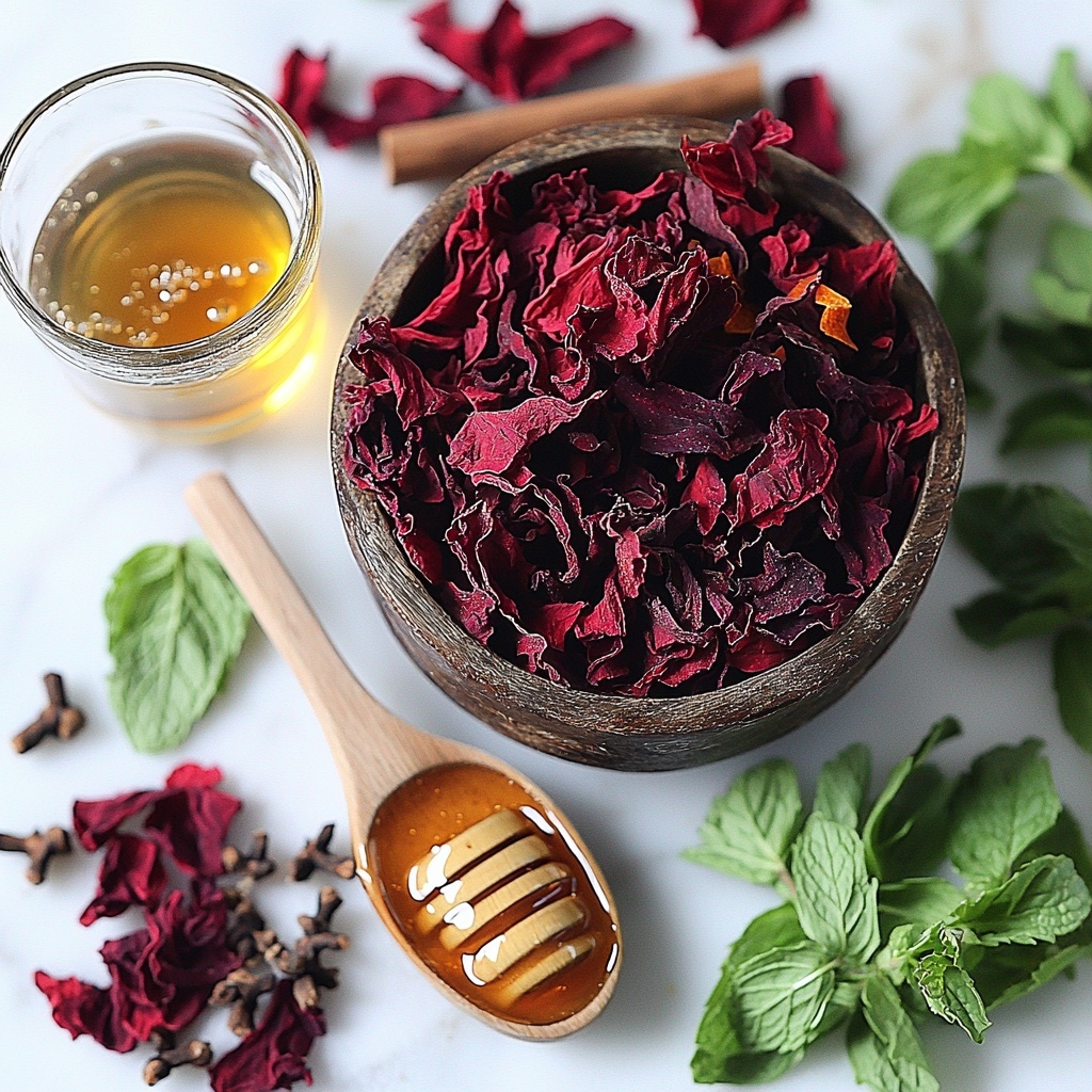 • 1/4 cup dried hibiscus petals: The star ingredient that delivers that signature tart, cranberry-like flavor and gorgeous ruby hue.