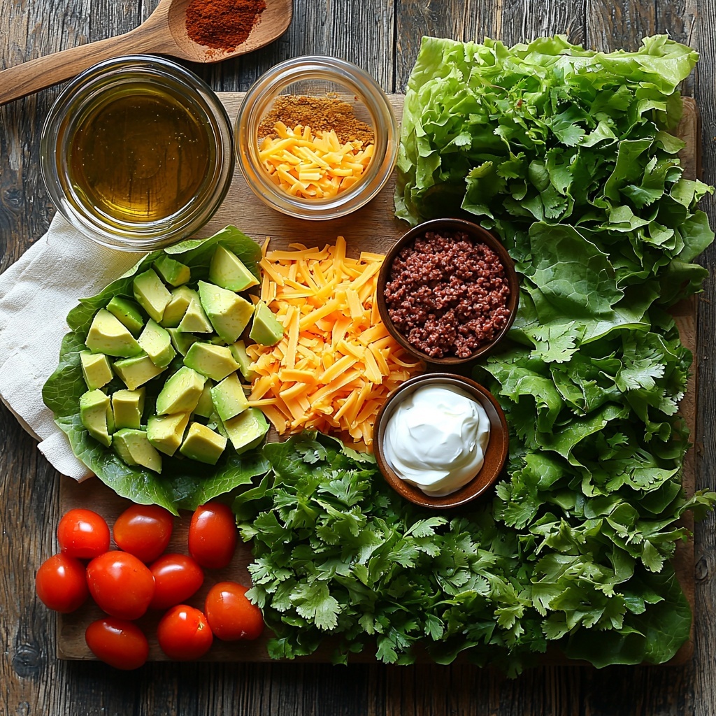 The beauty of this Keto Beef Taco Lettuce Wraps Bowls Recipe lies in its simplicity and the careful selection of ingredients. Each one plays a crucial role in building that perfect blend of savory, creamy, and fresh flavors. From the rich ground beef to the crisp lettuce and creamy avocado, these ingredients come together effortlessly to create a meal that’s as colorful as it is satisfying.