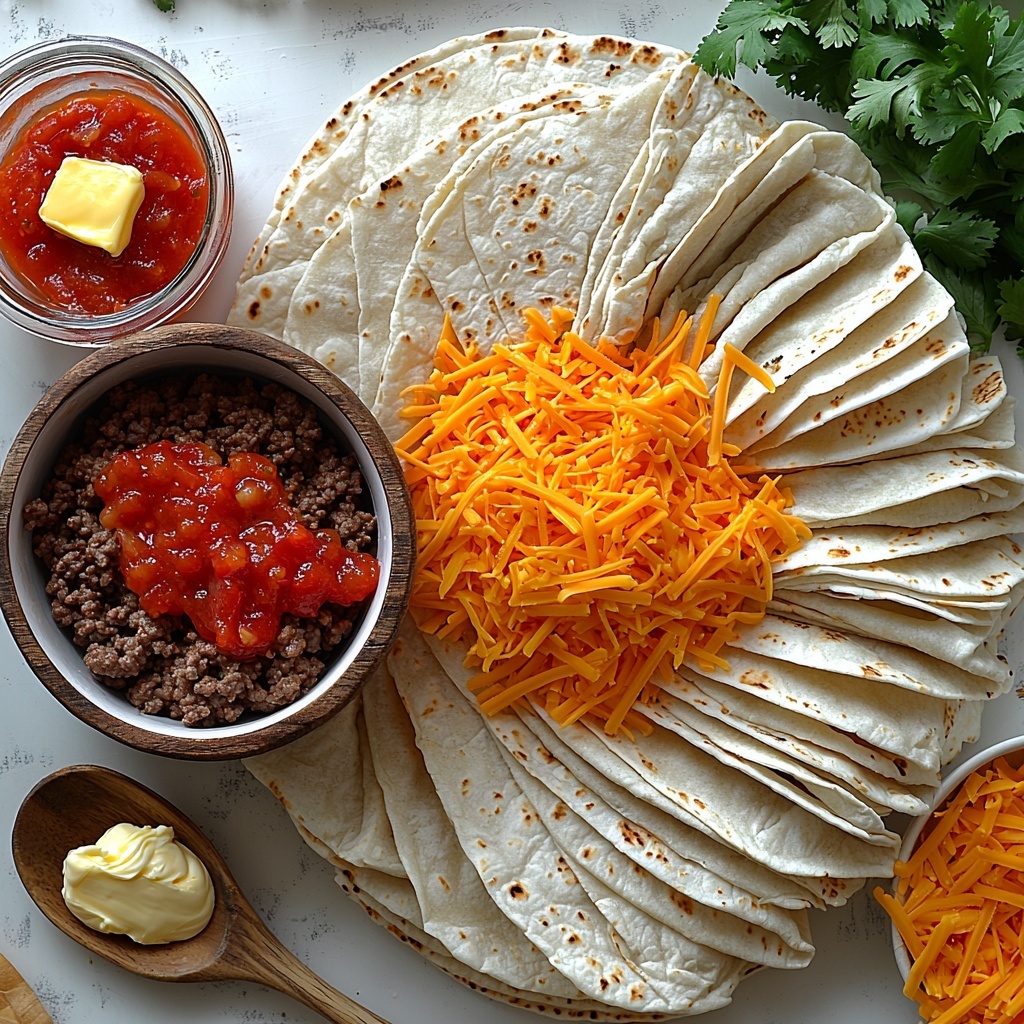 - Assemble the tacos: Lay one tortilla flat on a clean surface. Spread a generous spoonful of the cream cheese mixture in the center, top with a portion of the seasoned beef, and sprinkle shredded cheddar cheese over the beef.