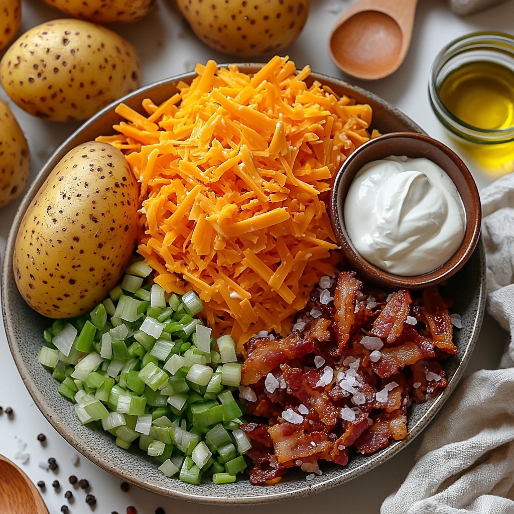• 1 1/2 cups shredded sharp cheddar cheese: Sharpness balances the richness and melts beautifully over the skins.