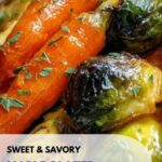 A simple and delicious roasted vegetable side dish featuring sweet maple glazed carrots and caramelized Brussels sprouts, perfect for a healthy and flavorful addition to any meal.