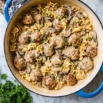 You can swap the meatballs for plant-based or mushroom-based meatballs and use vegetable broth instead of beef broth. The creamy sauce and mushrooms still provide plenty of flavor and comfort.