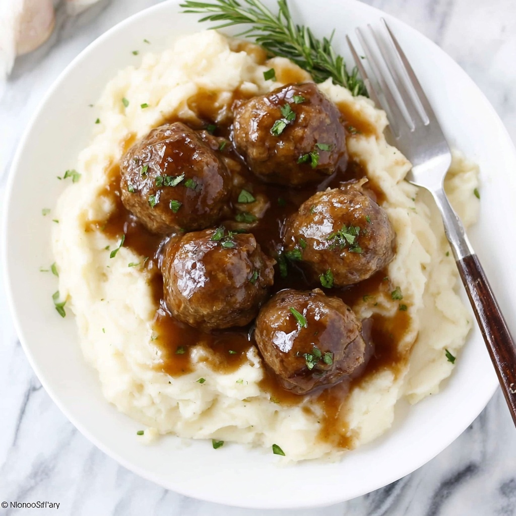 For a fun twist, pile the meatballs and gravy onto a soft dinner roll or toasted baguette slices for a hearty sandwich. You could also use the meatballs as a topping over polenta or serve them as sliders for a crowd-pleasing appetizer. The possibilities are endless, making this dish as versatile as it is delicious!