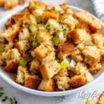 This classic Old Fashioned Stuffing recipe features a savory blend of sautéed onions and celery, fresh herbs, and French bread cubes moistened with rich chicken broth. Baked to golden perfection, it’s a comforting side dish perfect for holiday meals or anytime you crave a traditional stuffing.