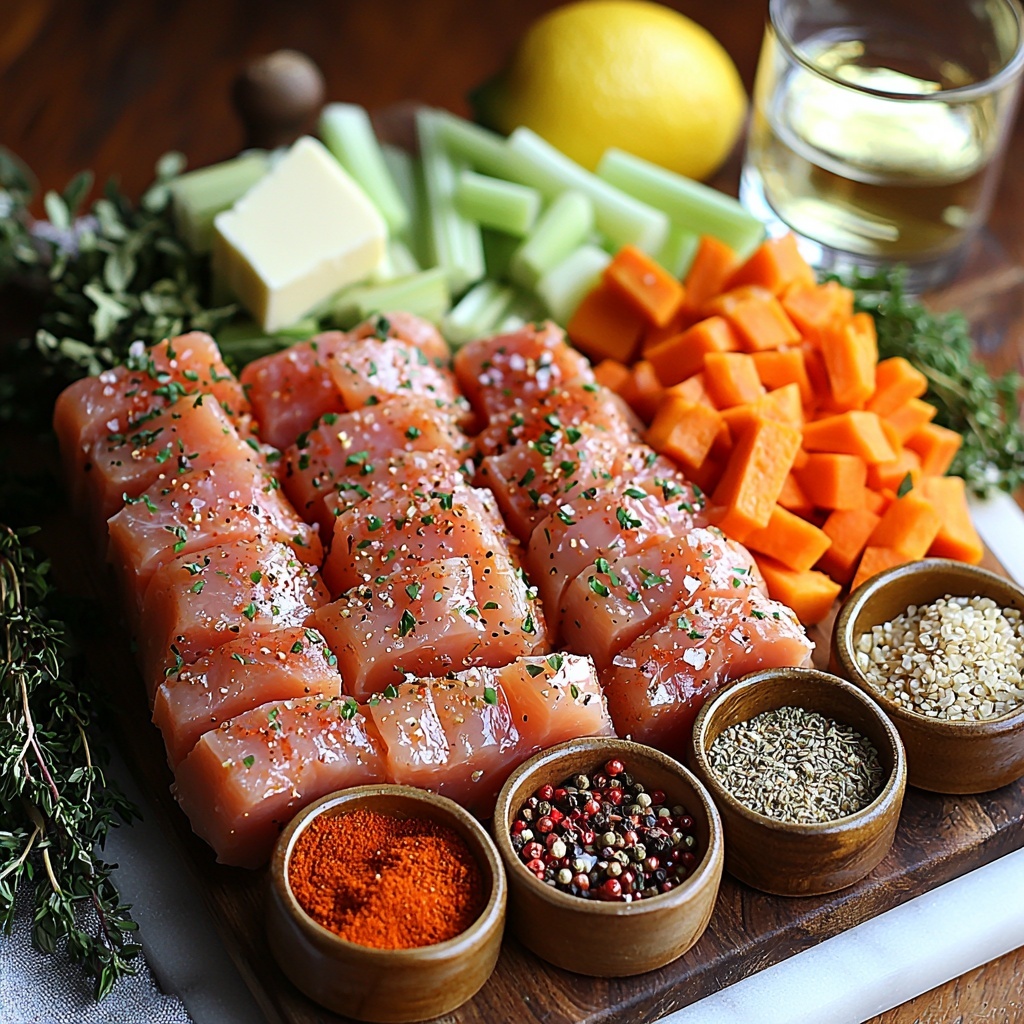 This recipe shines because of its straightforward yet thoughtfully curated ingredients. Each one plays a crucial role in building layers of flavor—from the zesty mustards and smoky spices to the fresh vegetables and rich butter that create a beautifully balanced dish with wonderful color and texture.