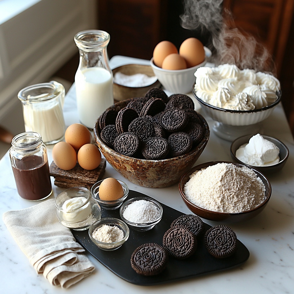 Gathering simple, everyday ingredients is the first step to creating a truly exceptional treat. Each element in this Oreo Cupcakes with Whipped Oreo Cream Cheese Frosting Recipe has a role that enhances flavor, texture, or overall experience—from the tender crumb of the cake to the luscious frosting on top.