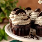 Delicious and moist Oreo Cupcakes topped with a rich whipped Oreo cream cheese frosting, perfect for parties and Oreo lovers. These cupcakes combine chocolate cake infused with cocoa and Oreos and a creamy, fluffy frosting studded with Oreo crumbs for a delightful texture and flavor.