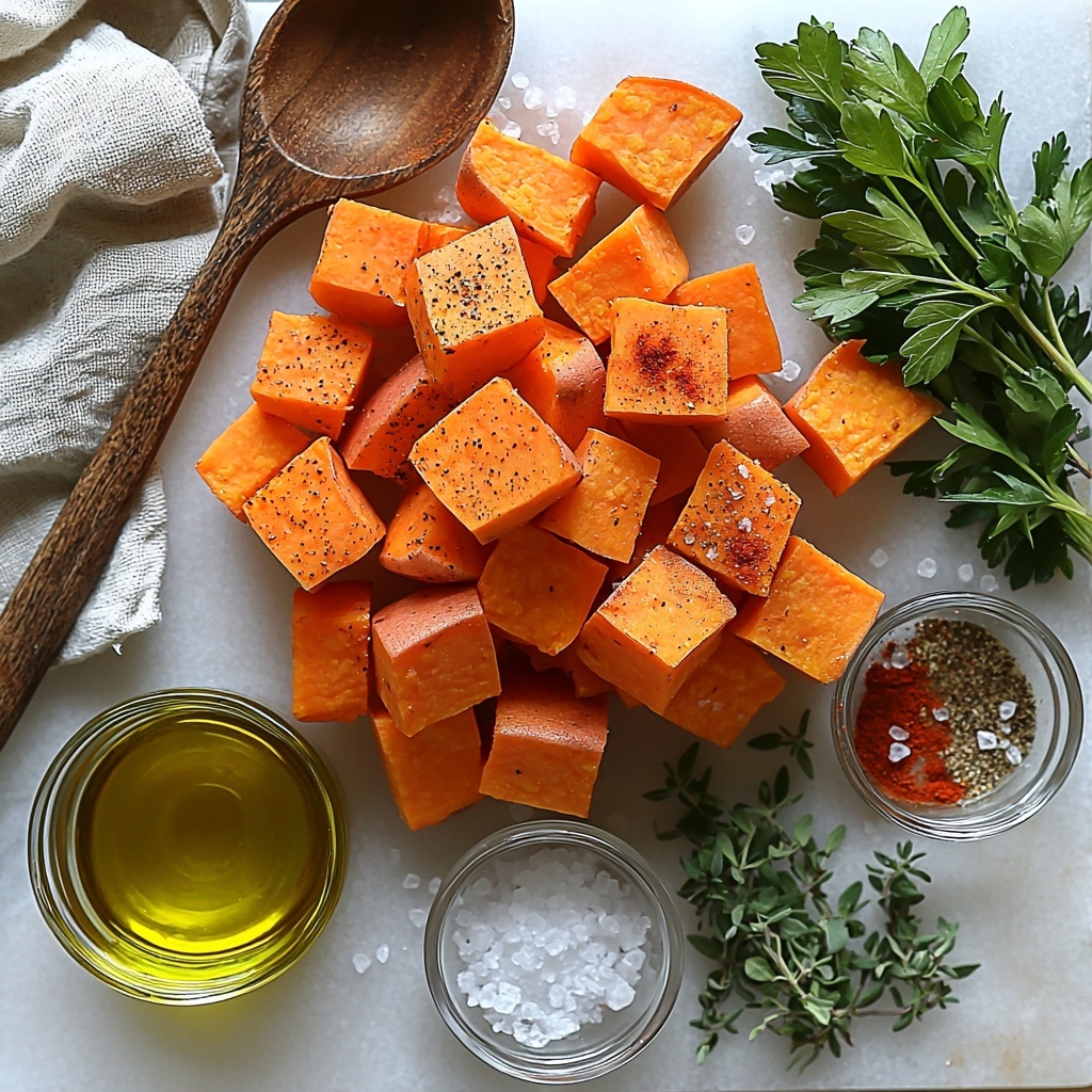 Once out of the oven, let your sweet potatoes rest for a few minutes. Then sprinkle fresh chopped parsley or thyme over the top for a burst of color and freshness. This final touch makes the dish look inviting and adds a subtle herbal brightness that ties everything together.