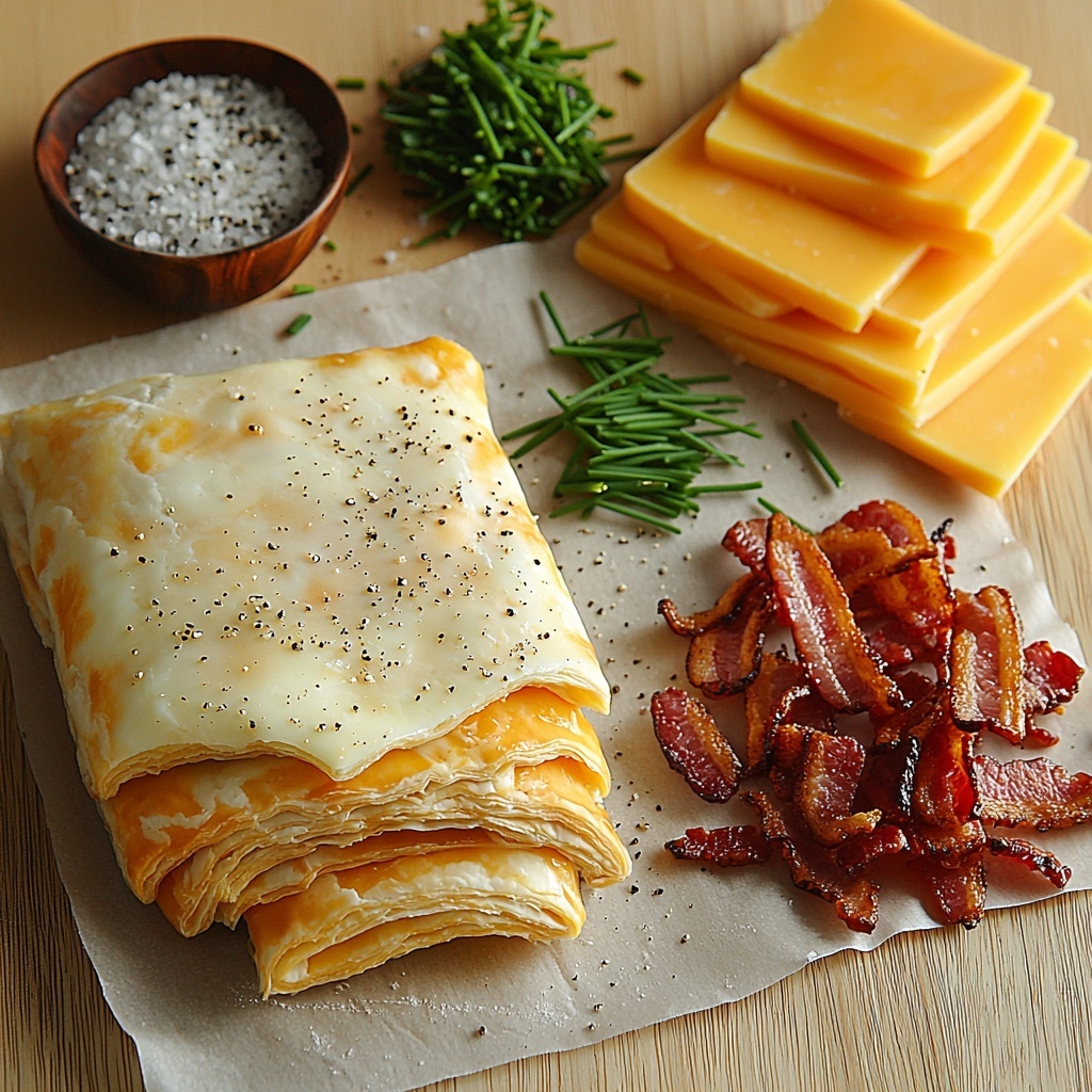 Gathering your ingredients for this tart is a breeze, and each one plays a vital role in bringing the dish to life. The puff pastry brings irresistible flakiness, eggs provide a creamy richness, cheese adds gooey, melty goodness, bacon lends a smoky crunch, and fresh chives finish everything off with a pop of color and mild onion flavor.