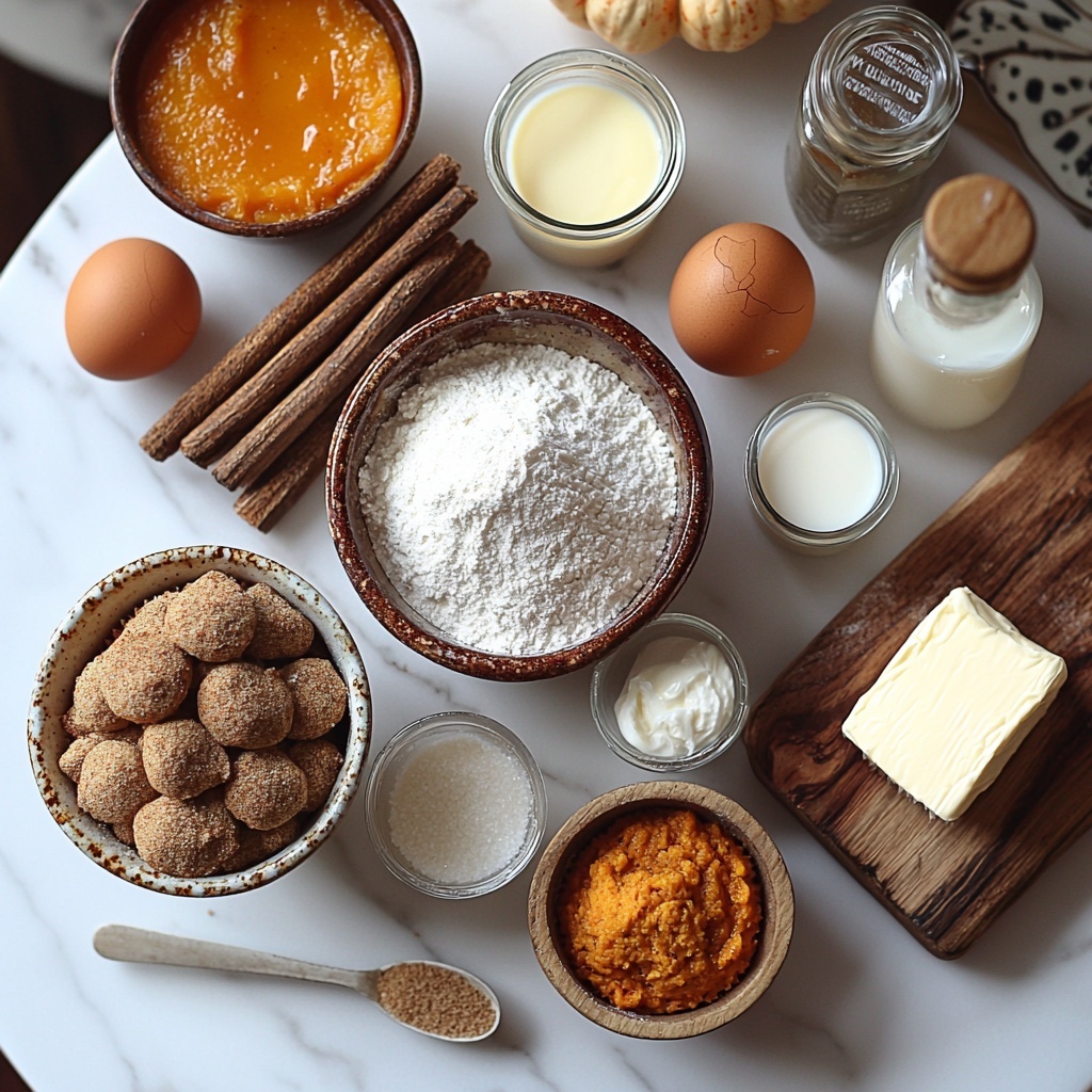 Gathering your ingredients for this recipe is straightforward, and each one plays a vital role in creating the perfect balance of texture, taste, and pumpkin-spiced warmth throughout these delightful muffins.