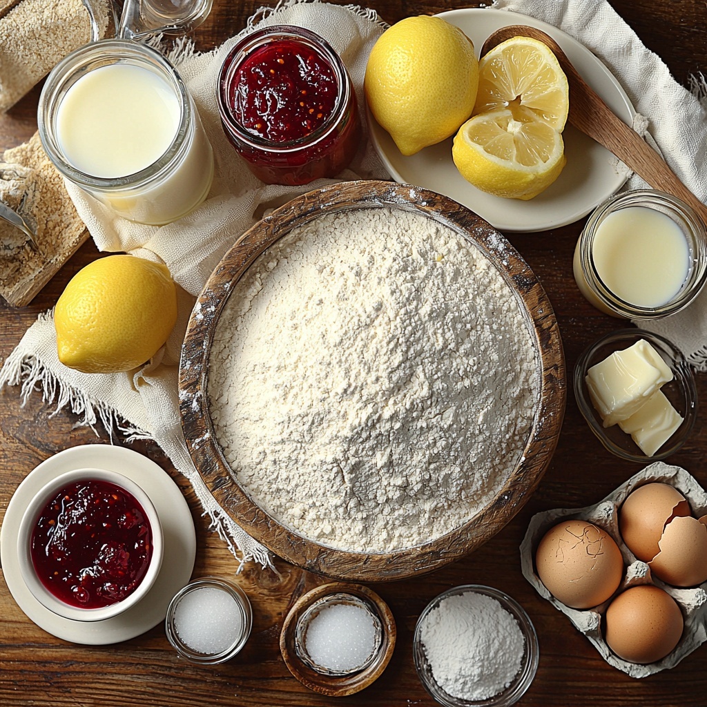 These ingredients are straightforward pantry staples, each chosen to build that rich, tender brioche texture while letting the bright raspberry flavor shine brilliantly through the swirl.